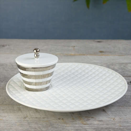 このうつわは、丸いくぼみがあり、そのままソースや食材を盛り付けてもOK!