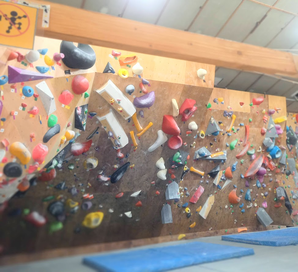 なんと、製陶所の天井の高さを活かしたボルダリングジムがあります!