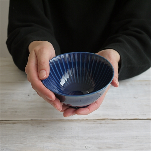 写真はしのぎシリーズのお茶碗です。しのぎと言われる表面を削いだようなデザインは、お花のようで華やか。