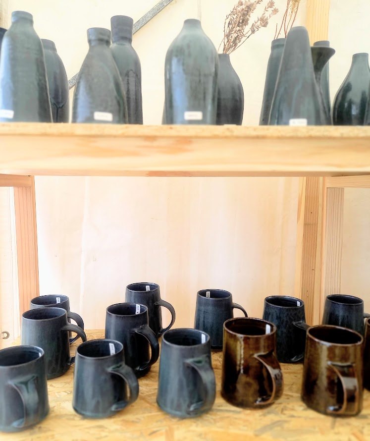 シックでマットな質感のブラックやブラウンの器が目を引きます。
